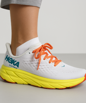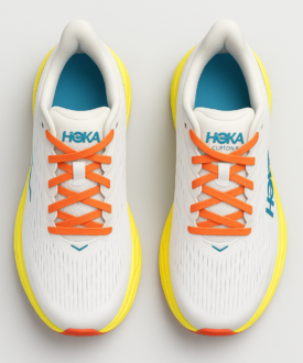 HOKA Clifton Women’s Road-Running Shoes – White/Yellow/Teal