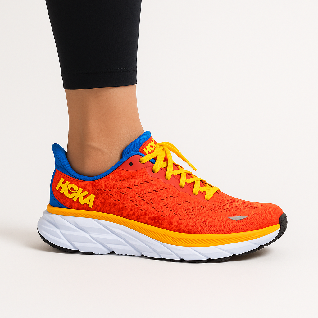 Women’s HOKA Clifton 9 delivers soft cushioning and a smooth, rocker ride for easy runs and all-day wear.