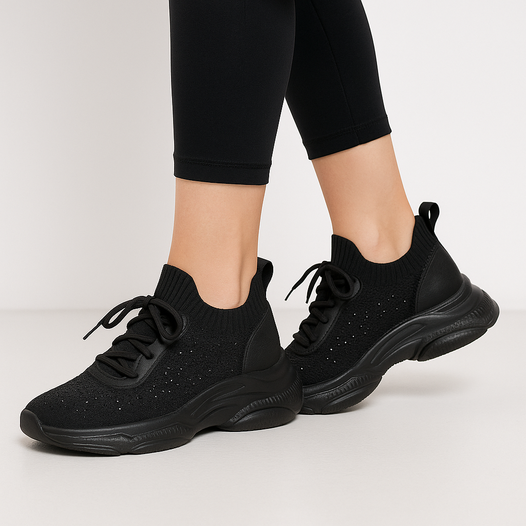 Tags: athleisure shoes women, chunky sole sneakers, fashion trainers for women, lace up sock sneakers, sparkly sneakers women
