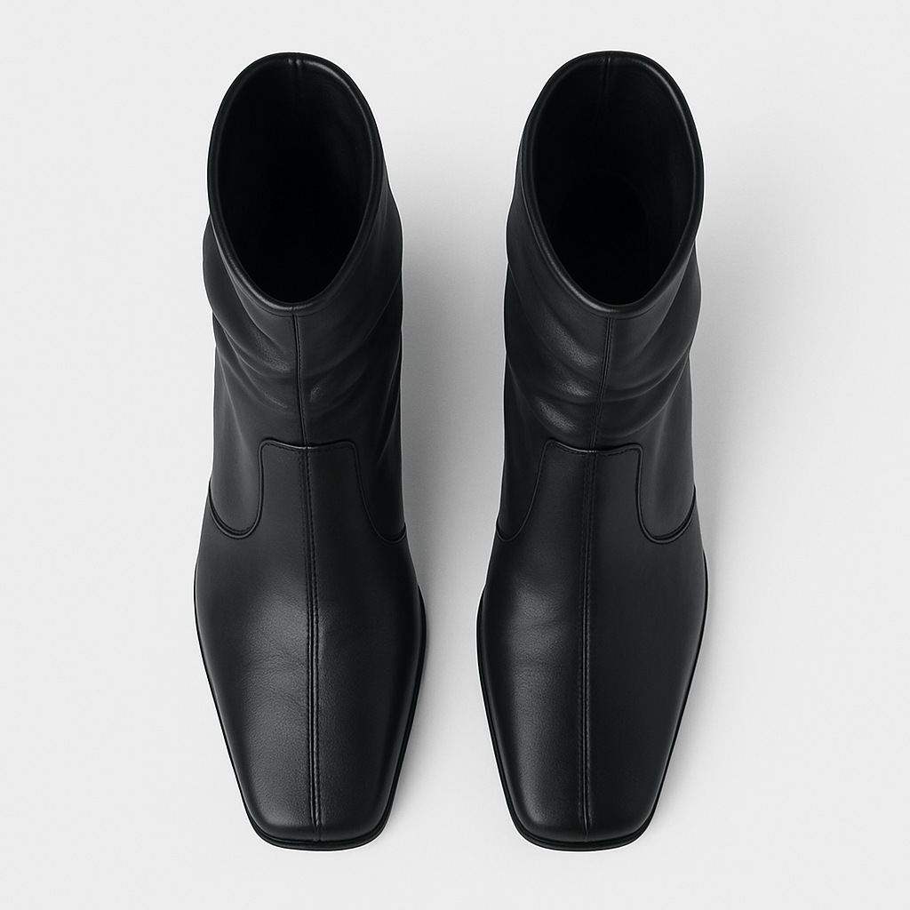 Sleek and versatile, these ladies? black ankle boots pair a modern square toe with a stable block heel and a softly slouched shaft for effortless style. Crafted in smooth vegan leather with clean top-stitching, they offer day-to-night comfort and a flattering silhouette. Dress them up with tailored pants or keep it casual with denim?either way, the minimalist design and easy side profile make them a wardrobe essential for work, evenings out, and winter errands alike.