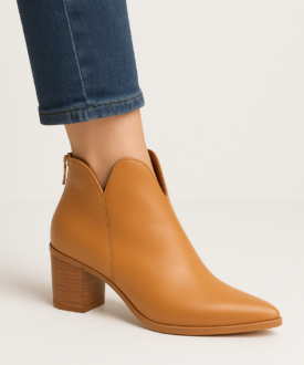 Tags: camel ankle booties, ladies heeled boots India, pointed toe ankle boots women block heel boots, tan ankle boots, zip ankle boots for women