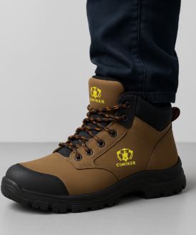 Rugged high-ankle steel-toe boots built for tough worksites. Slip- and oil-resistant PU outsole grips on wet floors, while cushioned collar and breathable lining keep you comfortable. Durable upper with reinforced toe and heel for lasting protection.