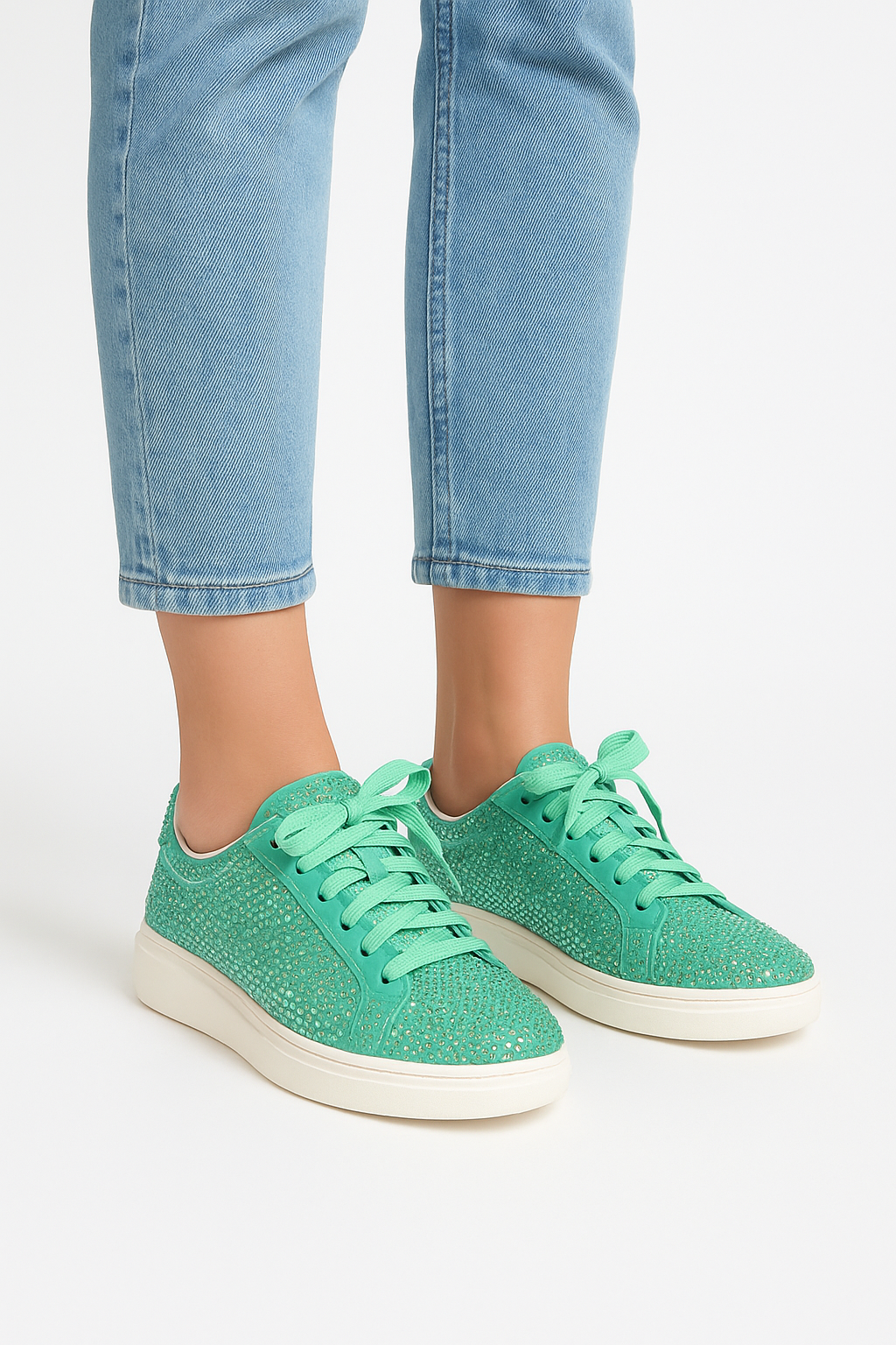 Tags: glitter sneakers for women, lace up fashion shoes, ladies embellished shoes, mint green sneakers, platform casual sneakers, women rhinestone sneakers